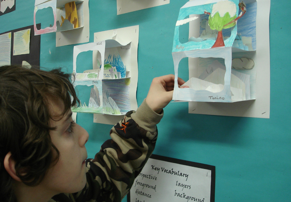 ‘John facilitated a Year 6 workshop during which the children had opportunities to manipulate perspective. The results were stunning, as the children produced a series of fascinating and carefully constructed 3D models of mountain scenes. John’s approach was child-centred and engaging, supporting those children who needed extra help whilst stretching those with stronger design skills.’
