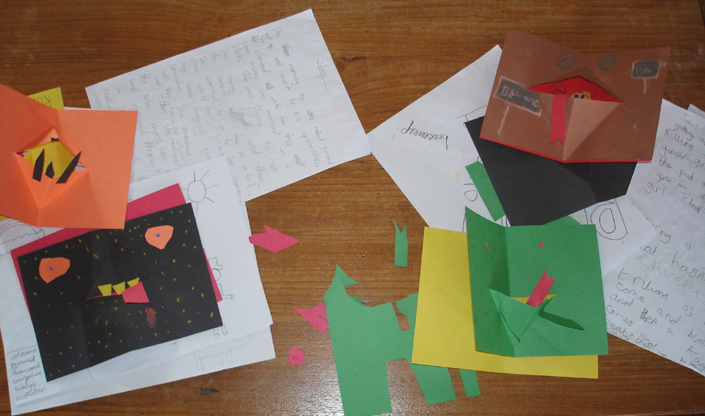 The children, when I did meet them, were an extremely enthusiastic bunch and it was so much fun to show my books and talk about my work. They also produced some brilliant pop-up books of their own. Below is some images of the work in progress.