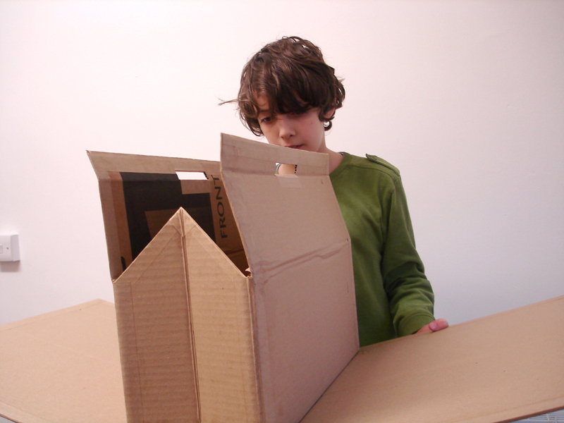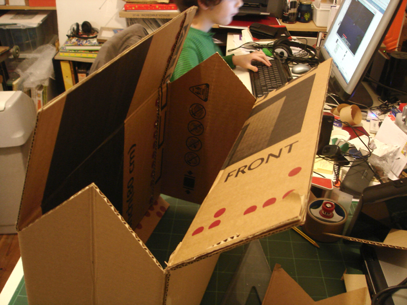 The idea for a collapsible cardboard toolbox came out of the planning meeting – hit the kids with a pop-up on a grand scale to prepare them for the paper engineering workshops to follow. It would also function as a container and a focal point, getting across the idea of writing and illustrating skills as tools.