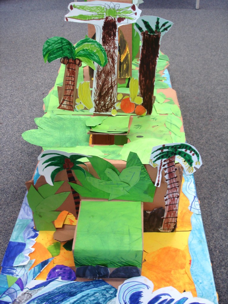 As well as working on small-scale individual pop-ups, they worked as a team on the larger pieces. Each class used a story they’d been studying and, in the case of year 2, the challenge was to connect Shakespeare’s The Tempest and Twelfth Night, and paper engineering.