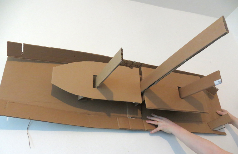 Usually when I do this exercise I’ll present the children with a framework consisting of abstract shapes and challenge them to make something out of it. With this school I’ve been given the theme of pirates so I’m creating frameworks that are clearly the beginnings of three ships. It’s relatively easy to create pop-up boats but more difficult to make them fill up the whole space, hence the fold up bits. I’m very interesting to see what the children do with these – check back later to see how they get on.