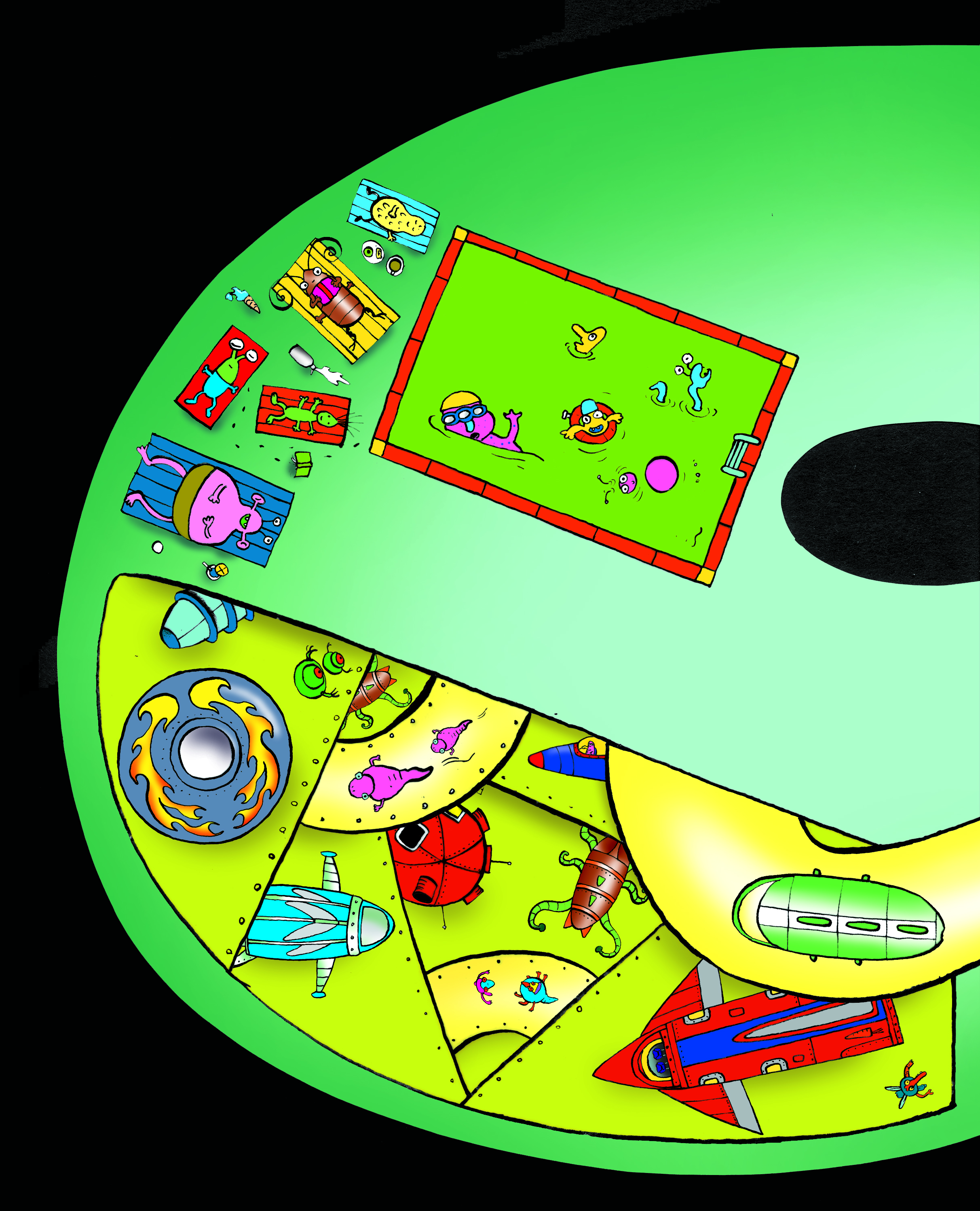 My interpretation of Illustration Friday‘s word of the week. Alien summer from my still-to-be-published space book – it’s a detail from one of the sections of the final pop-up spread.