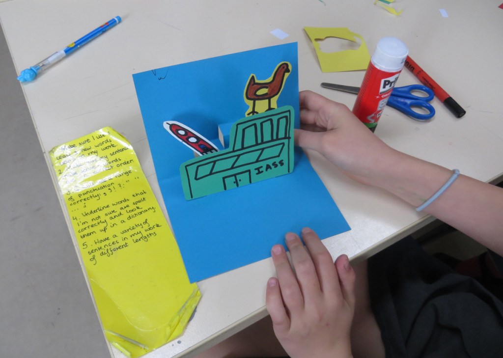 After my initial school talk, I ran a series of workshops with all classes where I showed the children how to make their own pop-up books.