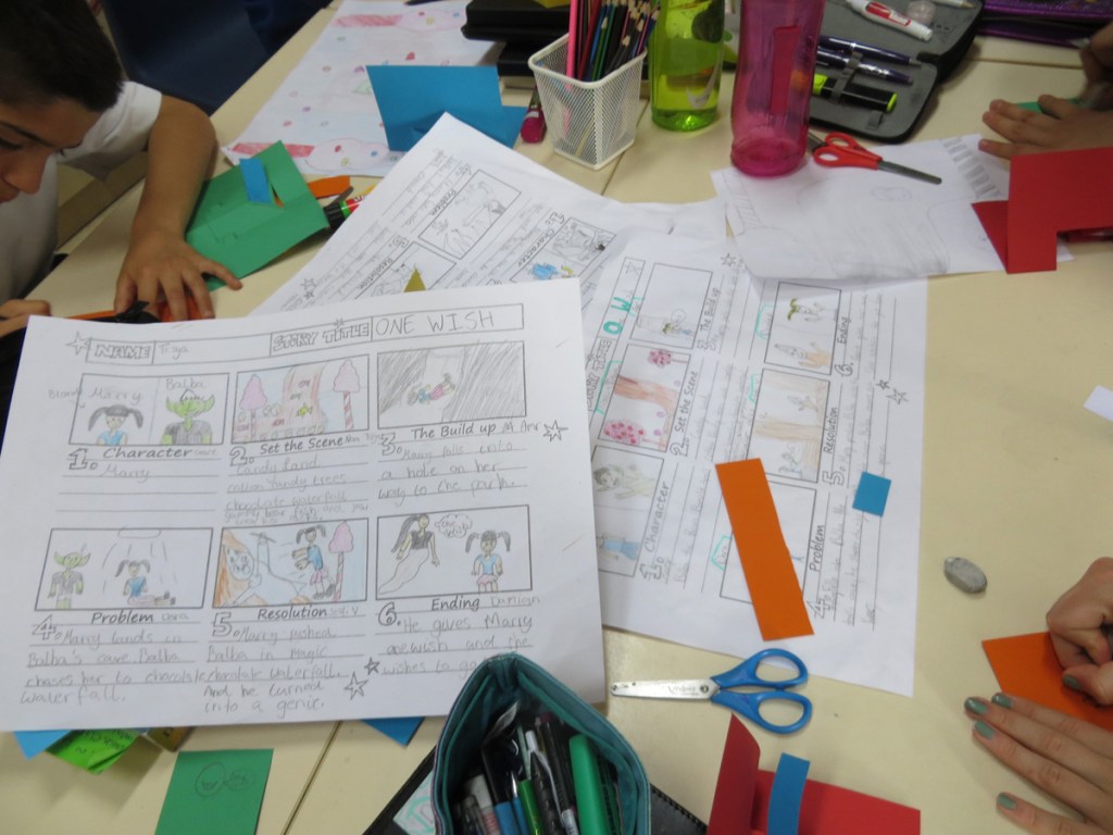 Day 1 will consist of learning the basics. Each of the 3 Year 4 classes will learn techniques which they will then share between them before my next visit. Images show the ‘manual’ I’ll be leaving to guide them and to show the starting point for day 2 when we develop the books further.