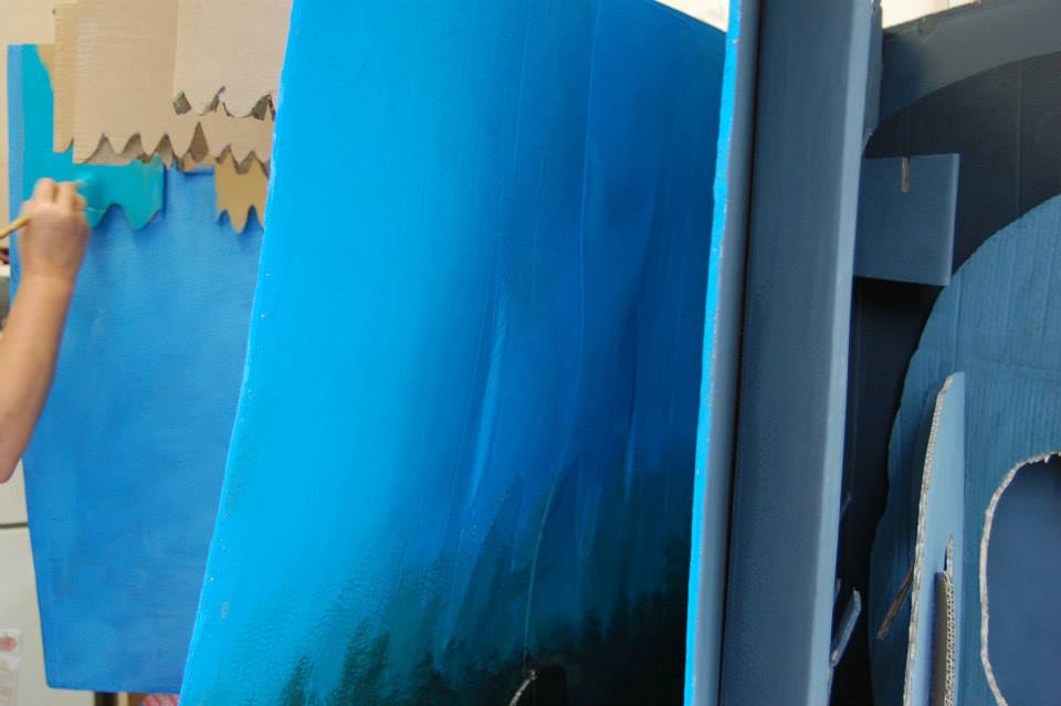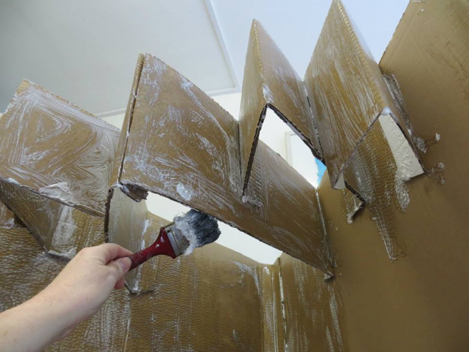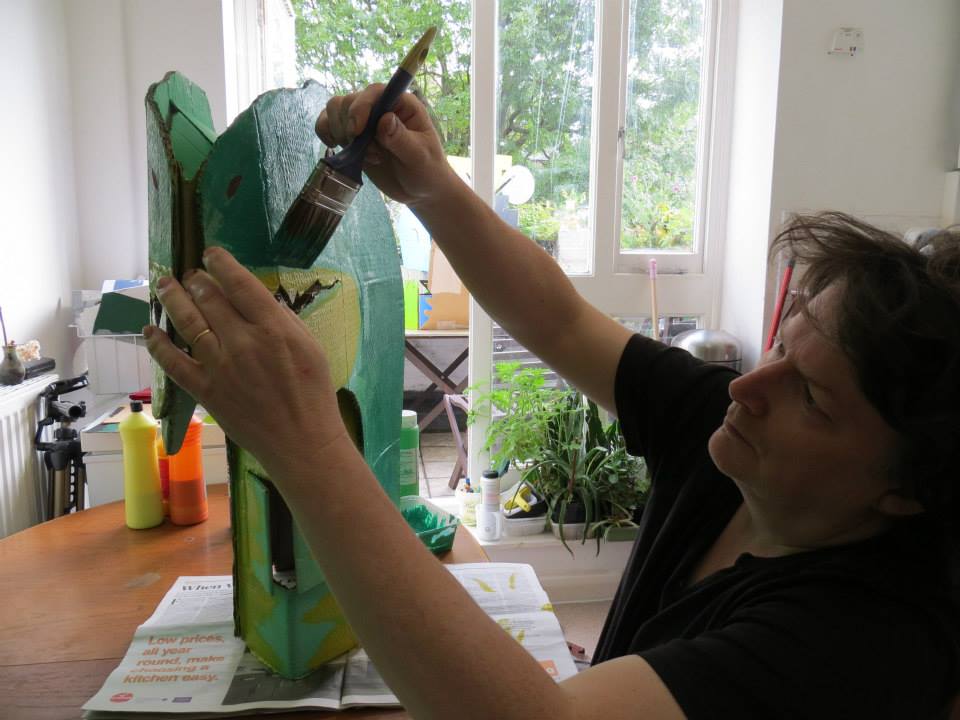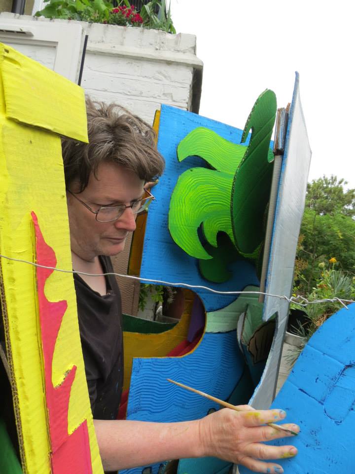 I was impressed by the way they took inspiration from Boxpark in Shoreditch, the surrounding streets and graffiti they photographed. I gave them guidance with the construction of the main framework and worked with a small team to get it in place and glued, while the rest of the children got to work on the other smaller components. They were given broad instructions for the painting of the structures but apart than that they were completely free to bring their own ideas to the final surface decoration.