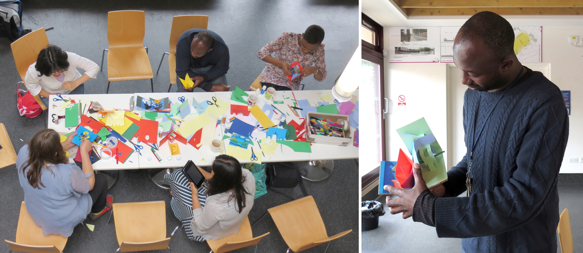 Pictures from the workshop at 3 Corners Centre over the weekend. I was very pleased to see a good range of ages and abilities – one woman who brought her child ended up doing the amazing construction below.