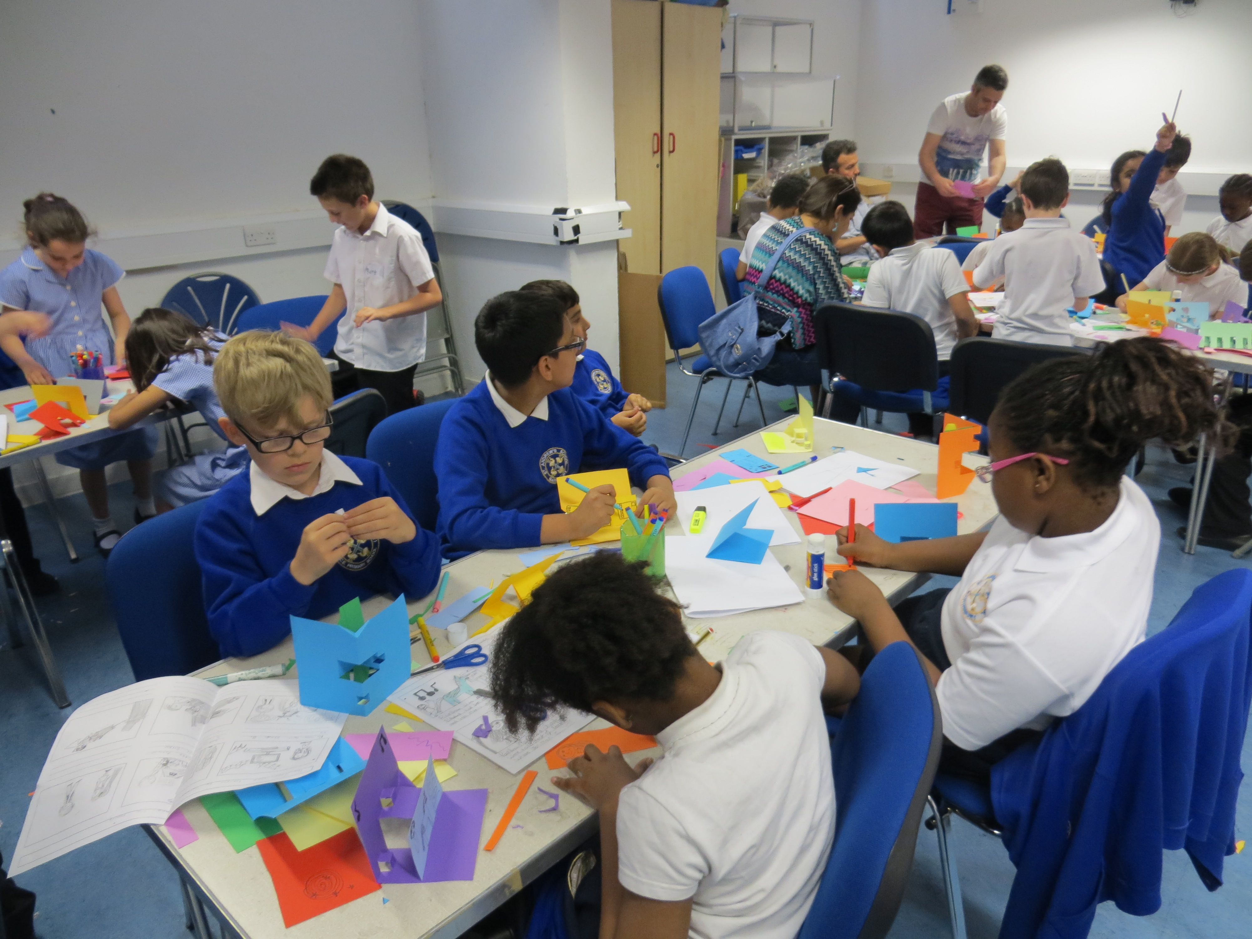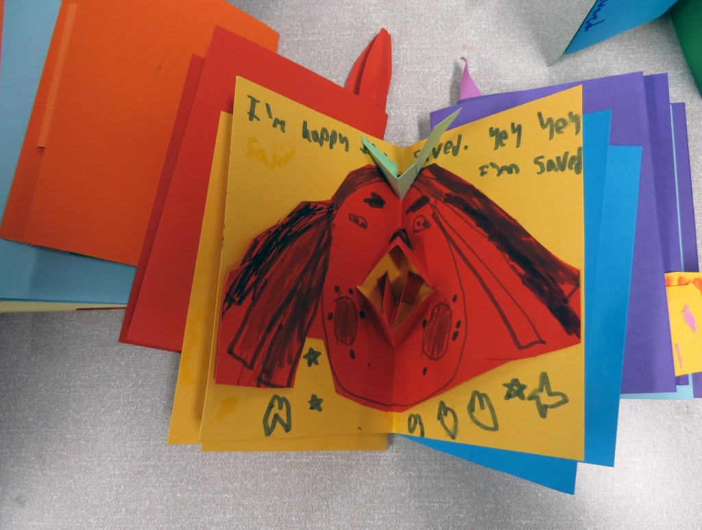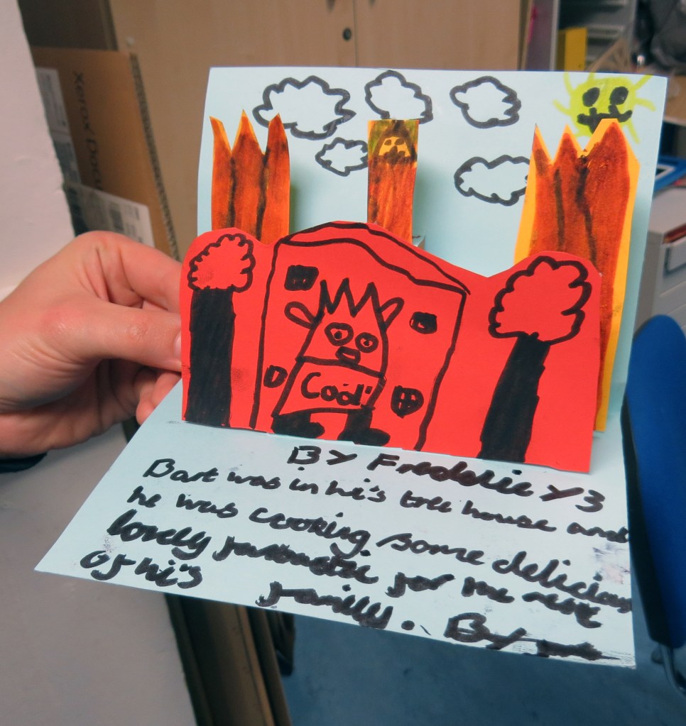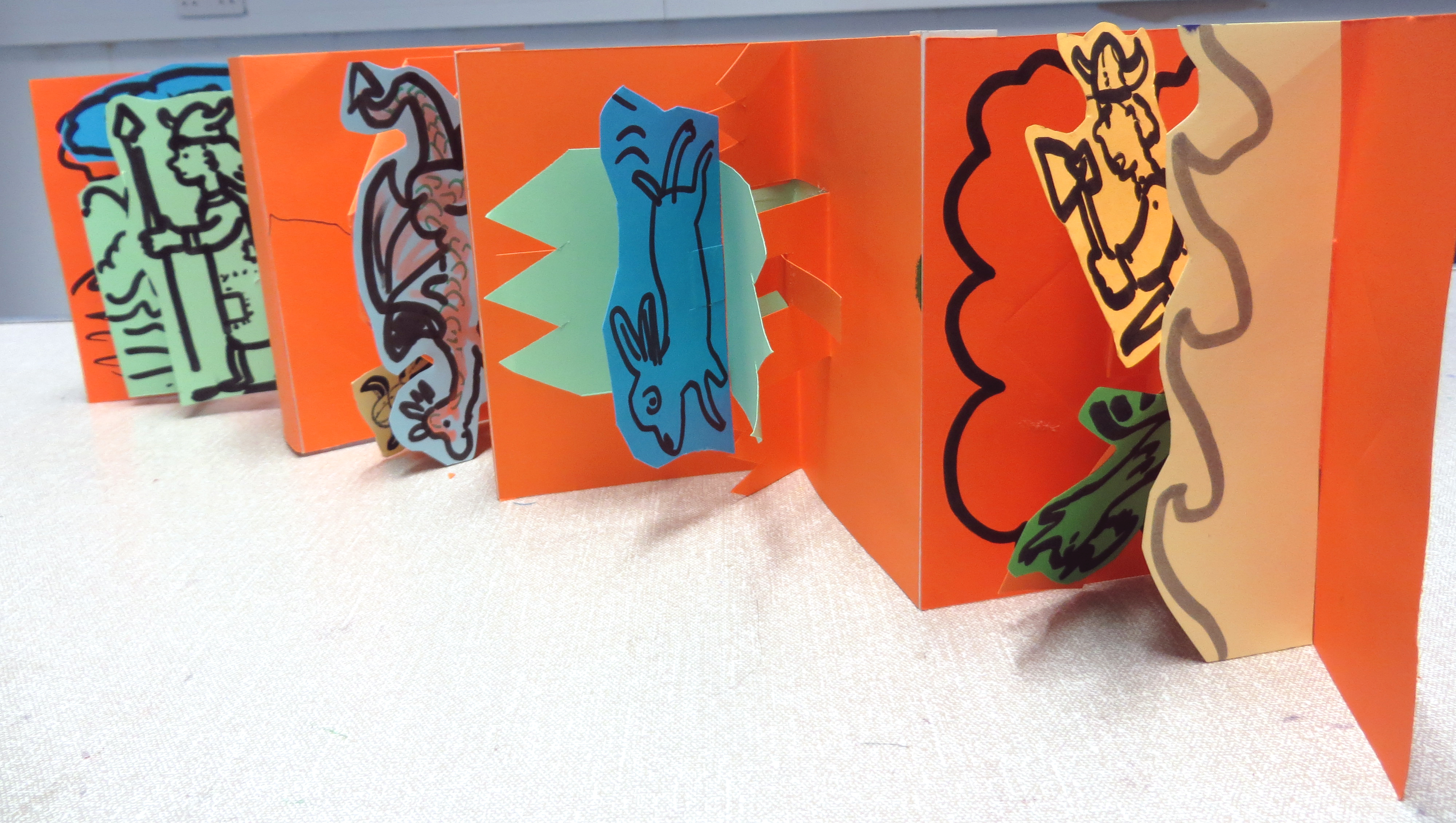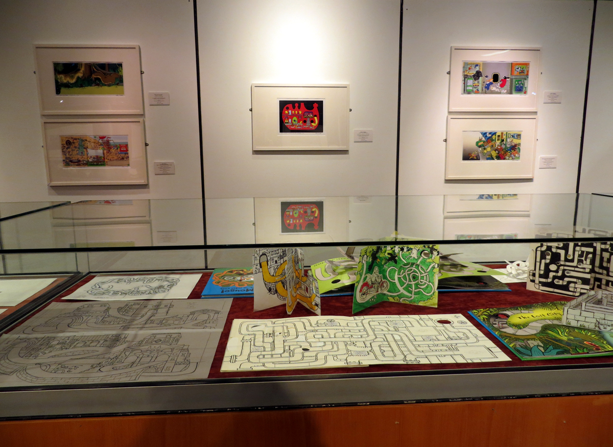 The work on show are examples of flat illustrations from the books or those pop-up spreads that can be easily merged.