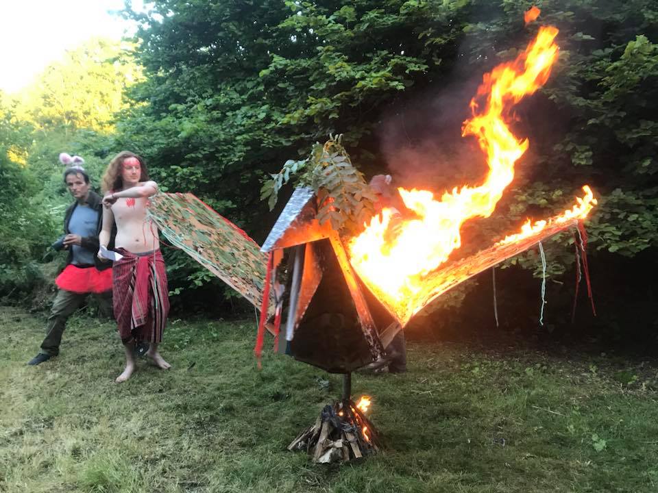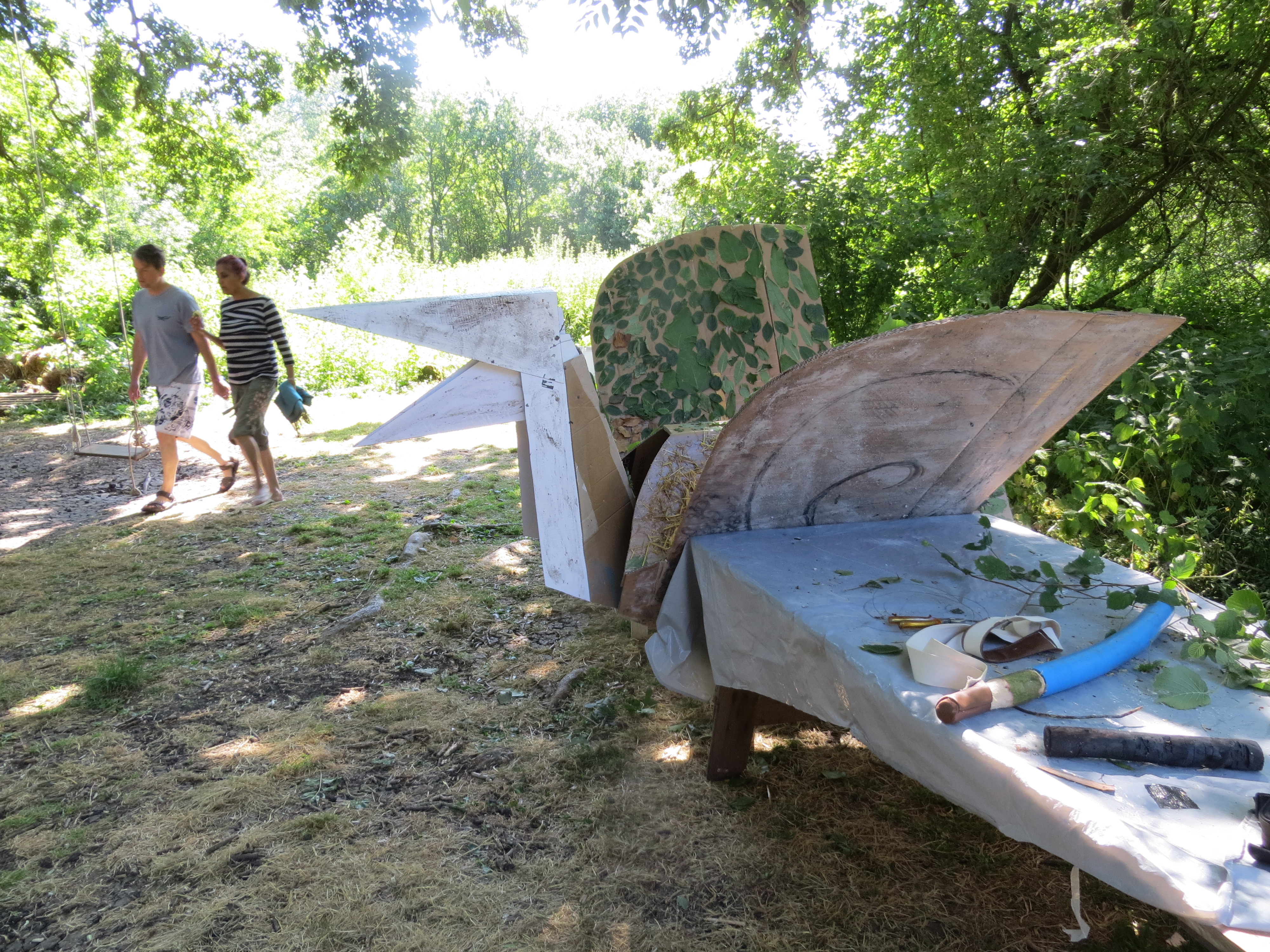 Just back this week from High Sun Solstice Camp where I collaborated with Irma Irsara on a large-scale bird using paper-engineering principles. We were able, with the help of everyone at the camp, to create this from scratch over a 4 day period. We also ran workshops in pop-up design for a couple of hours each day. We eventually bid farewell to our bird in a very moving ceremony on the last day. Much love and thanks to everyone, especially Jonathan for making this a very special camp for us.
