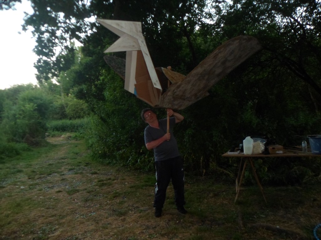 The design will be similar to a pop-up book mechanism – think of the bird’s wings as pages of a book. The mouth will also open and close by means of a string at the back of the head and elastic inside the beak and we’ll be using natural material from the forest to decorate the creature. There’s been a certain amount of advance planning and trouble shooting ahead of time on this one, in order to make things run smoothly and keep everyone engaged.