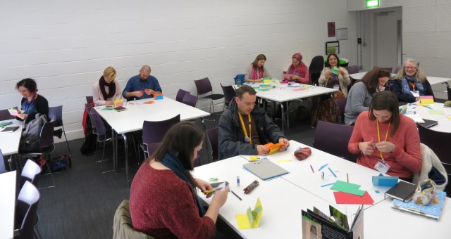 I was asked to deliver a session on multitasking to a group of illustrators at the SCBWI conference in Winchester last week-end. Jack-of- all-Trades: How to Have Multiple Careers as an Illustrator looked at choosing the right activities to complement and benefit your core practice as an illustrator of children’s picture books, getting the balance right and recognizing the boundaries? I also ran a hands-on activity where illustrators flexed their creative muscles in a mini workshop combining pop-up design and illustration.