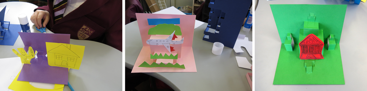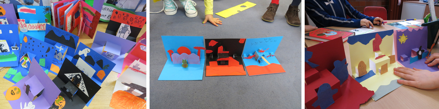 After my initial school talk, I ran a series of workshops with all classes where I showed the children how to make their own pop-up books.