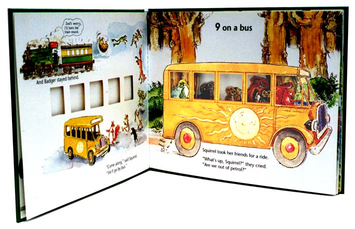 Badger takes his animal friends on a train ride, but after a series of mishaps, their numbers become depleted as one minor diseaster after another befalls them. A die-cut book for young children that teaches counting and animal recognition.